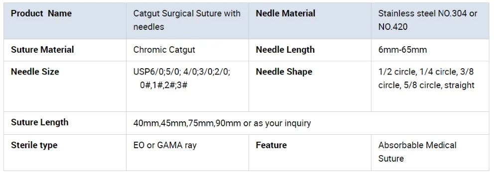 CE -godkänd brun degraderad Catgut kirurgisk suturtråd med nålar